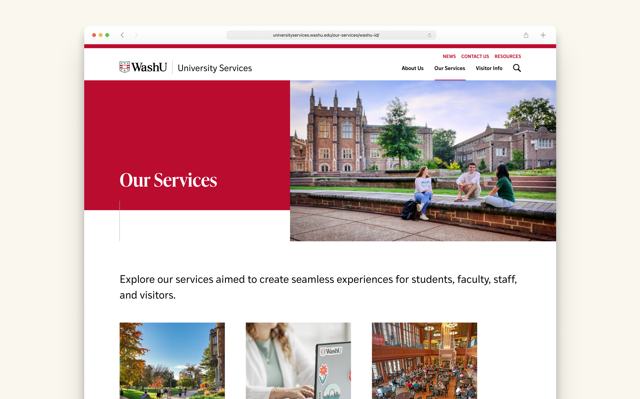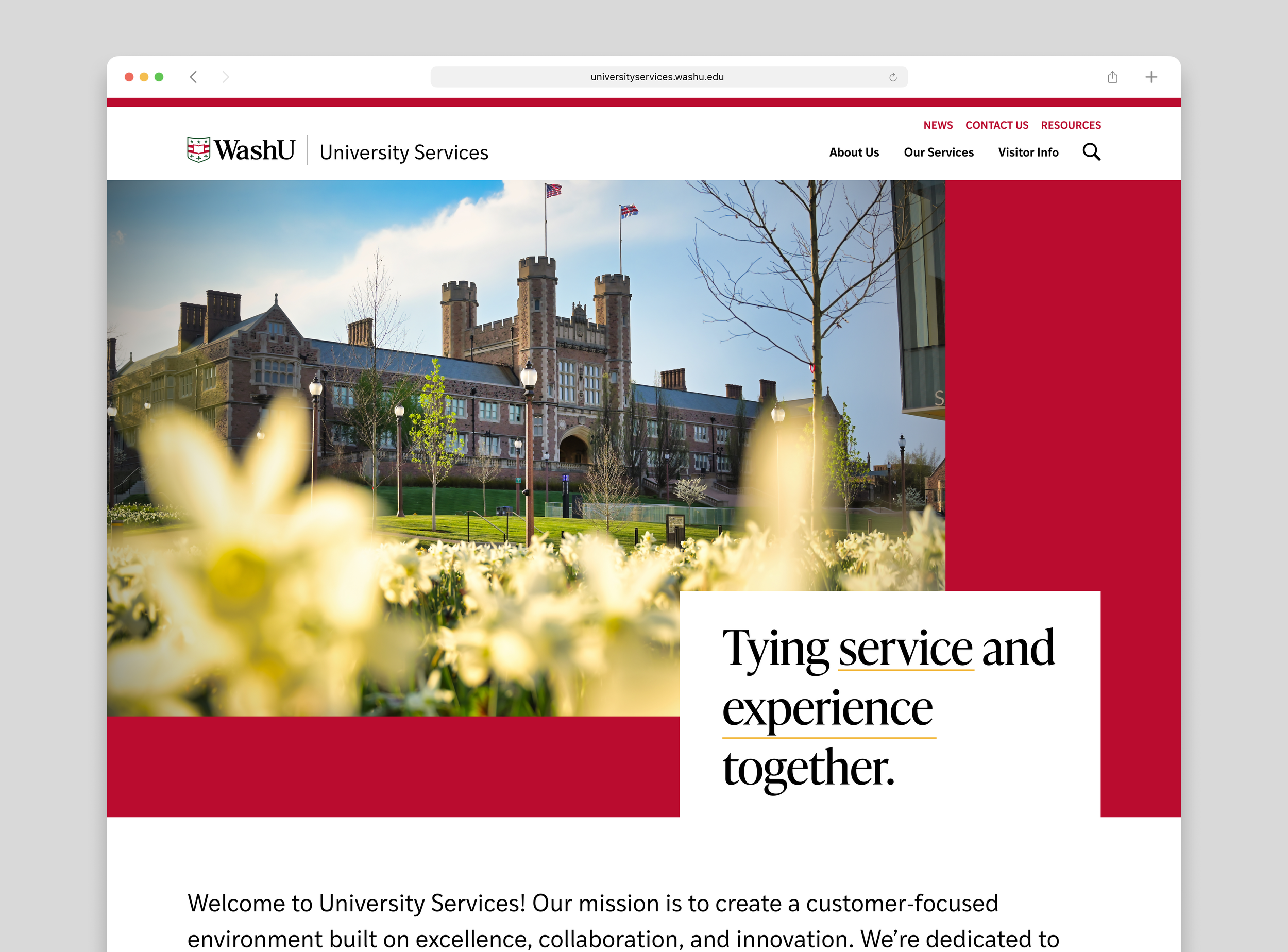As the WashU Marketing Team unveiled a new aesthetic, the project sought to adopt and translate this modern theme into the University Services hub. This ensured the division remained visually seamless and integrated with the wider university brand.